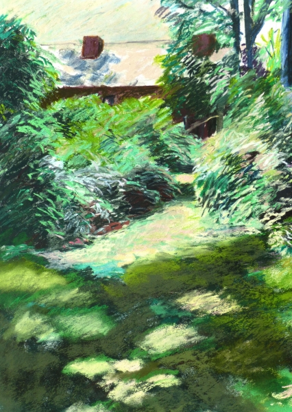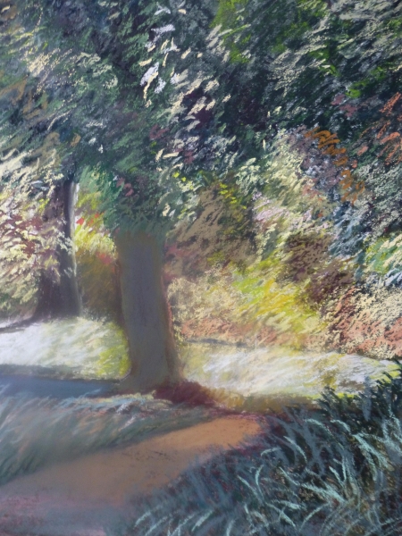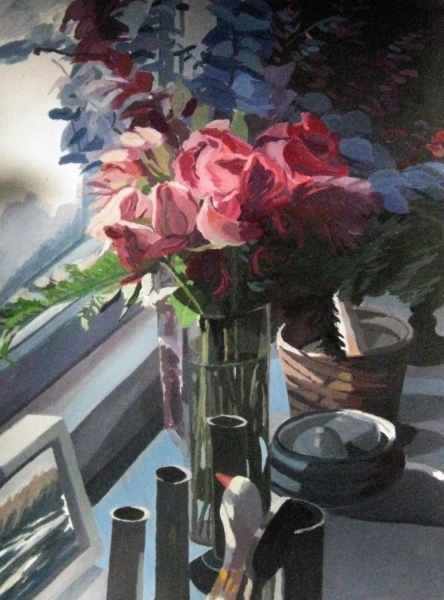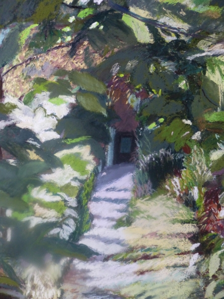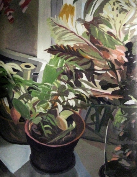 I loved the light coming in and what it did with the big pink flower and the blue leaves